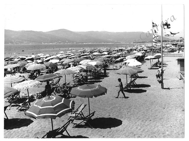 Marina di Carrara: spiaggia con bagnanti: anni '50-'60 sec. XX